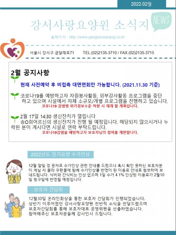 2022.02월 소식지 페이지 정보 작성자 강서사랑 작성일22-02-07 16:30 조회833회 댓글0건 관련링크 이전글 다음글 목록 본문 2022.02월 소식지입니다. 댓글목록 등록된 댓글이 없습니다. 이전글 다음글 목록