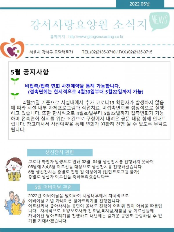 05월 소식지입니다. 페이지 정보 작성자 강서사랑 작성일22-05-01 09:55 조회891회 댓글0건 관련링크 이전글 다음글 목록 본문 05월 강서사랑요양원 소식지 입니다 ^^ 댓글목록 등록된 댓글이 없습니다. 이전글 다음글 목록