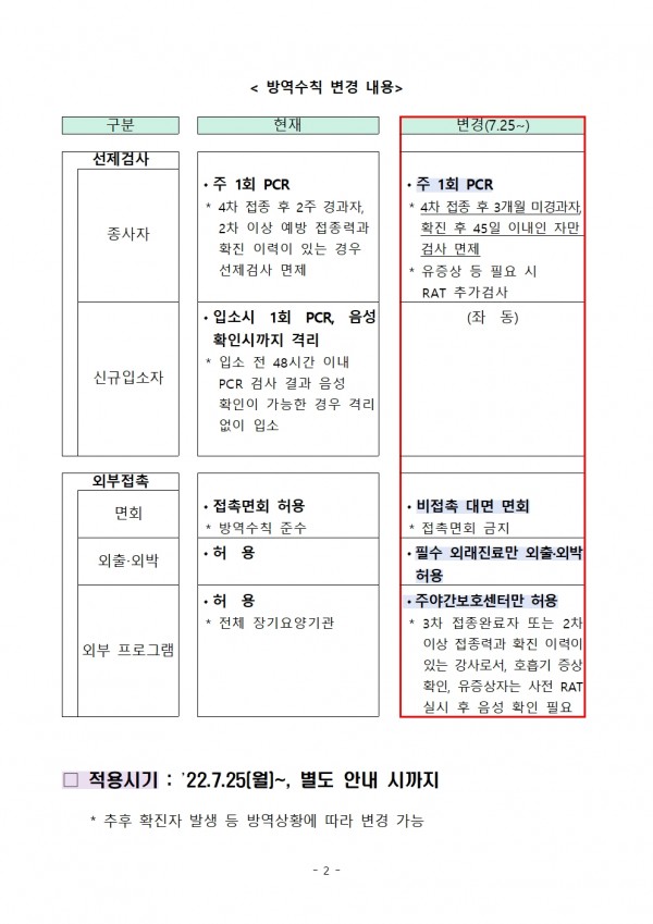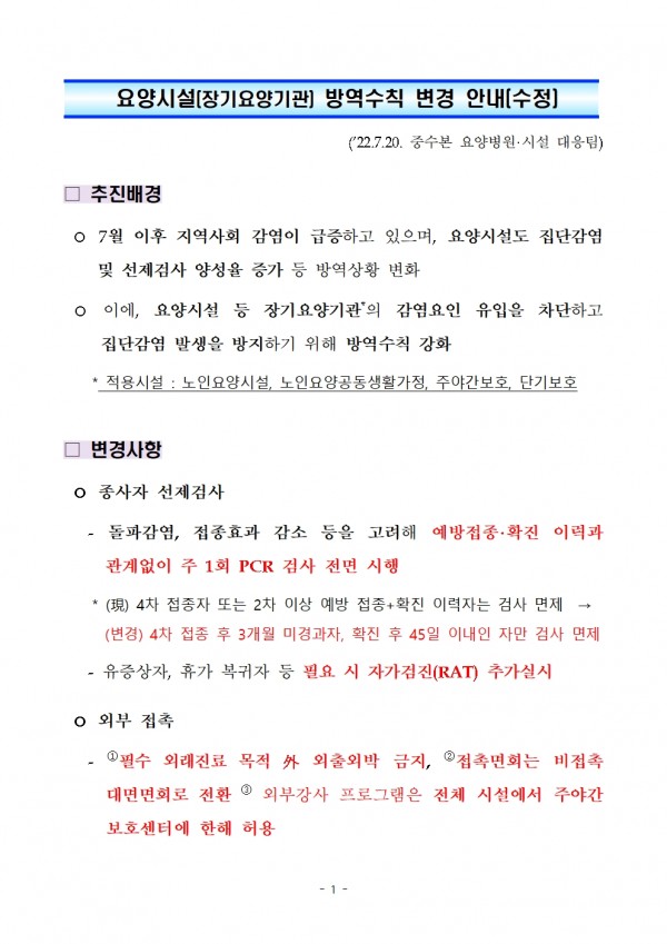 방역수칙 변경사항(07.21) 페이지 정보 작성자 강서사랑 작성일22-07-21 10:08 조회840회 댓글0건 관련링크 이전글 다음글 목록 본문 최근 코로나확진자 급증으로 인하여 변경된 방역수칙을 전달드립니다. 댓글목록 등록된 댓글이 없습니다. 이전글 다음글 목록
