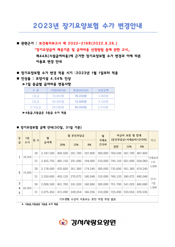 2023년 장기요양보험 수가 변경안내입니다. 페이지 정보 작성자 강서사랑 작성일23-03-21 16:01 조회970회 댓글0건 관련링크 다음글 목록 본문 참고 하시기 바랍니다. 댓글목록 등록된 댓글이 없습니다. 다음글 목록